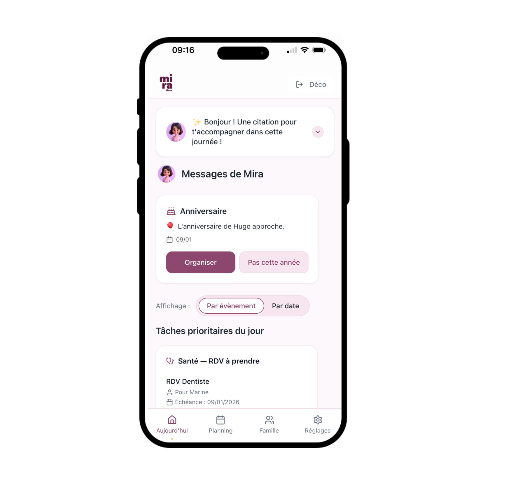 Enfants · Santé · Échéances · Démarches · Famille📱 Essayer gratuitement 7 jours